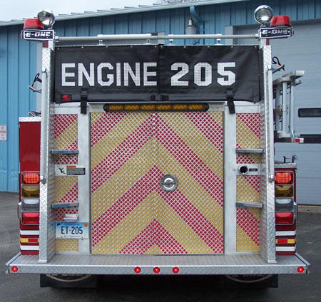 Rear, New Diamond Plate Hose Bed Covers, New Whelen NFPA LED lighting Package,