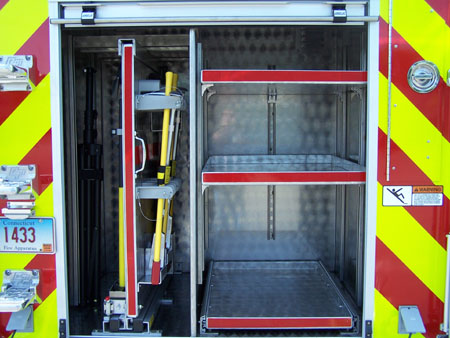cord reel in officers side pump panel. New Fire Research scene lighting.