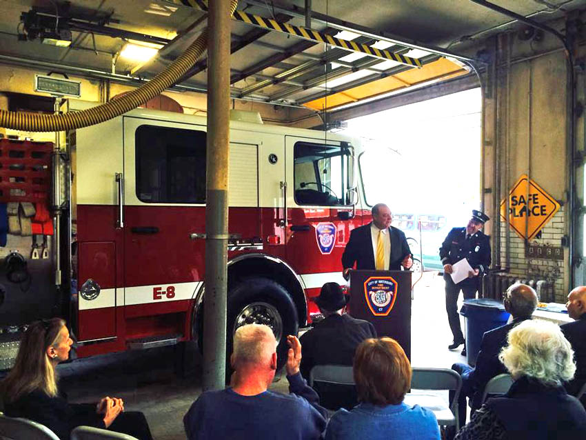| Waterbury Engine 8 Dedication Ceremony: See photos below from the dedication ceremony of Waterbury Engine 8 to official service. November 12, 2014. We gathered in the Bunker Hill Fire House along with Mayor Neil O'Leary, Fire Chief Dave Martin, various line chiefs of the WFD, the Bunker Hill Neighborhood association, several political figures, and City of Waterbury Aldermen. Engine 8 is now on the job !! |