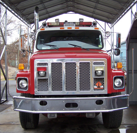 | Here are some pictures from our finished refurb of Willington's Engine Tanker 113. Upgraded lights, rust corrections, scene lights, hose covers, Zico Ladder rack. This ladder rack is a new design. |