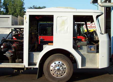 Rear, New Diamond Plate Hose Bed Covers, New Whelen NFPA LED lighting Package,