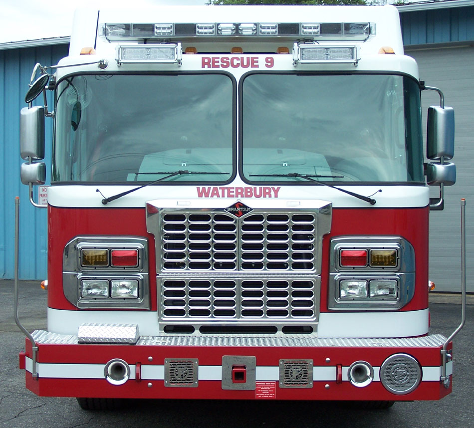 | WATERBURY RESCUE SPECS: Spartan Gladiator LFD 7-Man Cab with 20" raised roof, 500 HP Cummins Engine , 4000 EVS Allison Transmission, GK Custom Stainless Steel Non-Walk in Rescue Body, Winco 25 KW Generator, Command Light 6000 Watt Light Tower, Amdor Roll-up Doors with LED Compartment Lighting, Whelen LED Warning Light Package, FRC Scene Lights, Whelen Scene Lights, Hannay Hydraulic, Electrical and Air Electric Rewind Reels, Custom Sliding Tool Boards & Trays. |