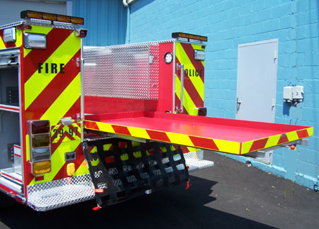 | Specifications: Ford F550 4 x 4 Crew Cab, Chassis: GK Custom Aluminum Body, Amdor Roll-up doors with LED Compartment Lighting, Whelen NFPA LED Warning Light Package, FRC Pole Mounted Scene Lights, Command Light Remote Traffic Flow Board, Havis-Shield Console |