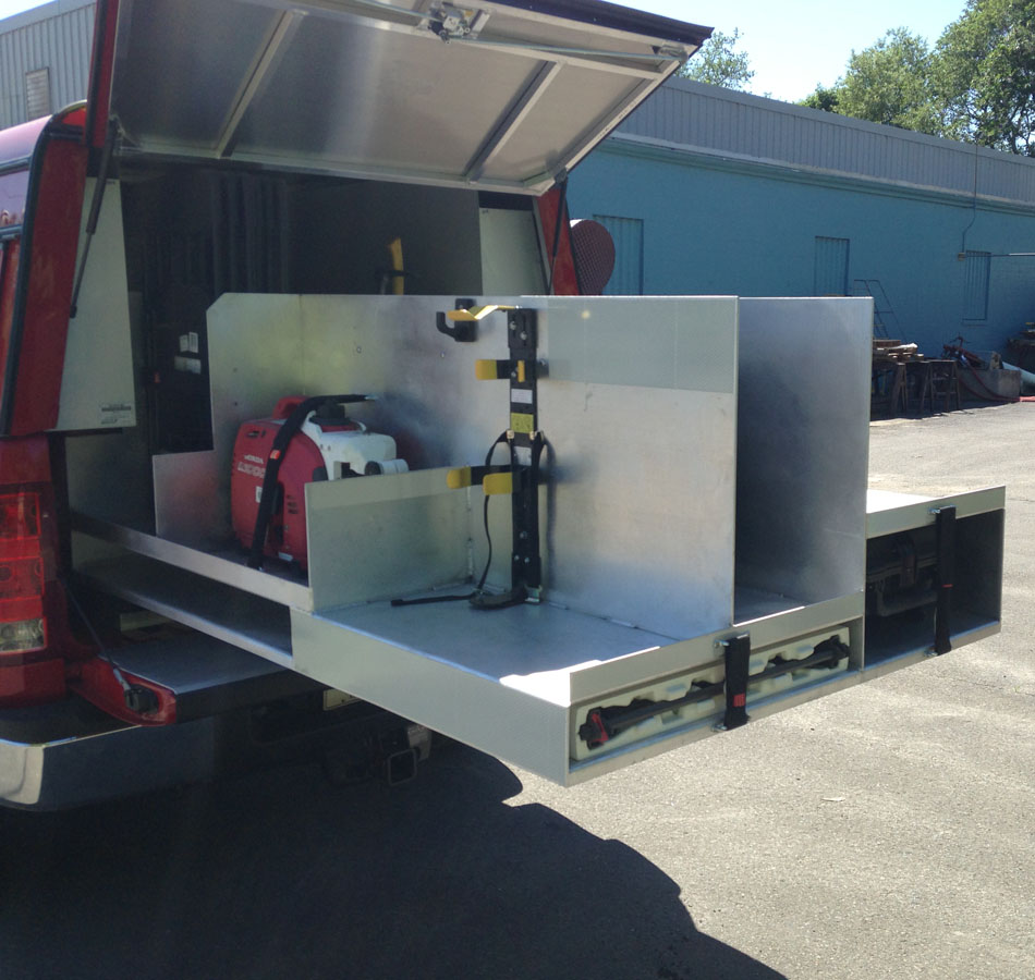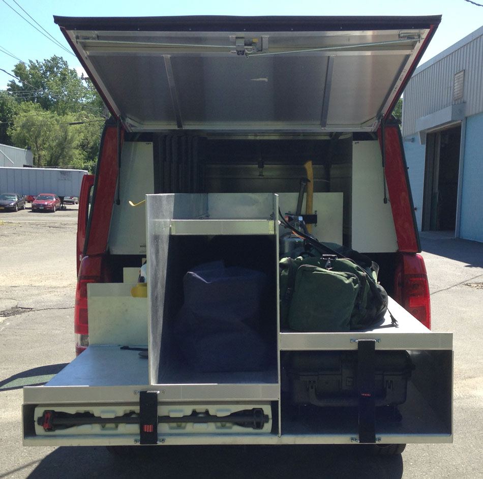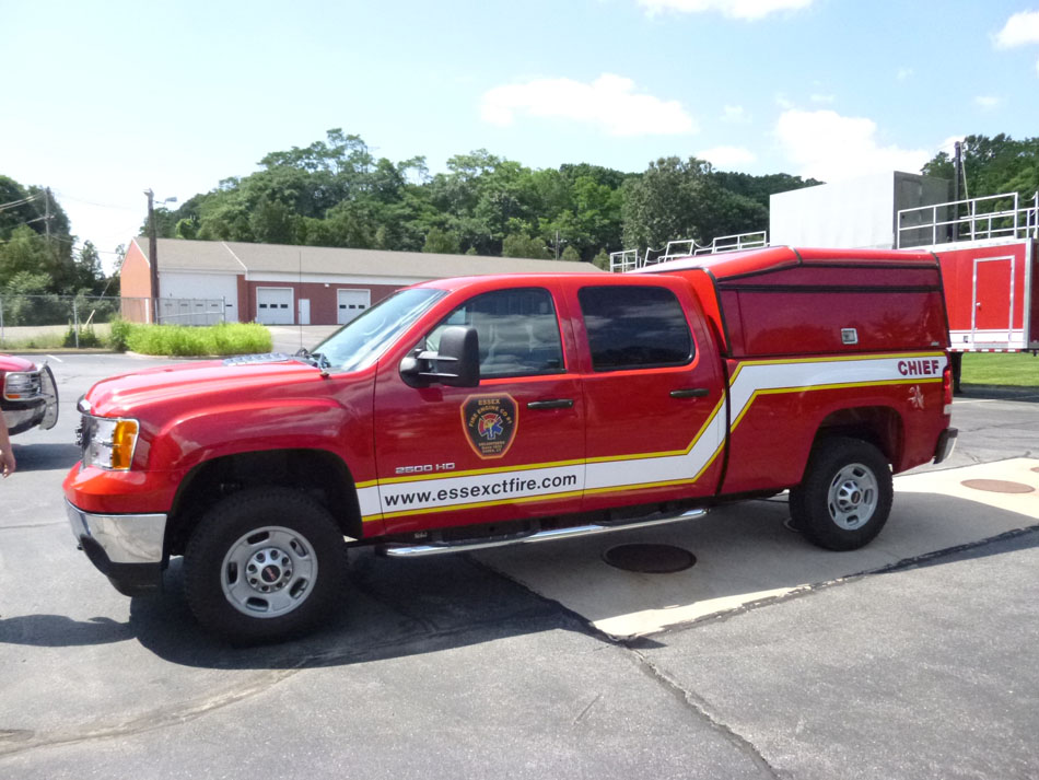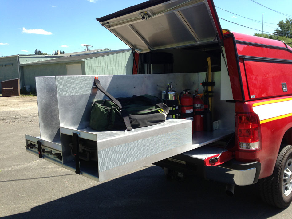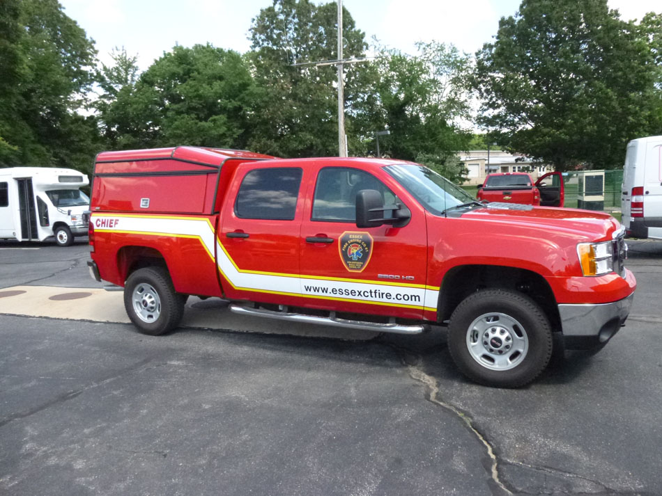 | In addition to designing and fabricating fire apparatus, GK also performs modifications and enhancements to existing apparatus, regardless of manufacturer. In this case, Gowans- Knight was pleased to have assisted the Essex (CT) Fire Engine Co. #1 with their new Chief's Truck. An aluminum truck cap was installed on the truck. GK custom built the slide out rear tray, and striped and lettered the vehicle. |