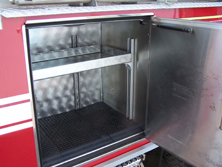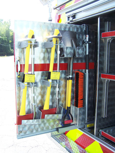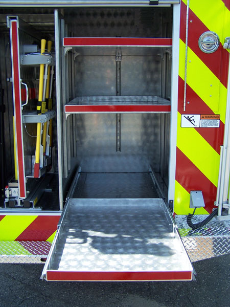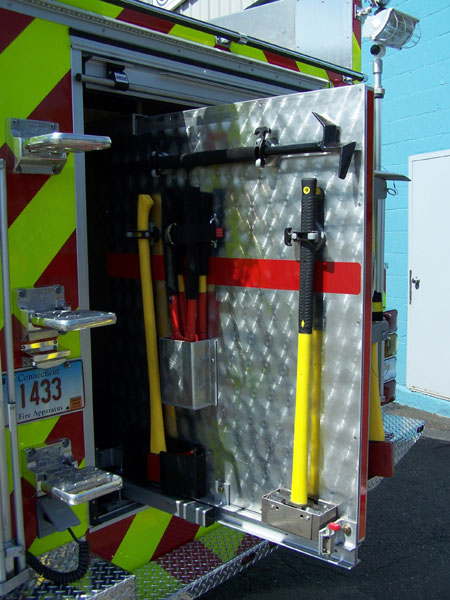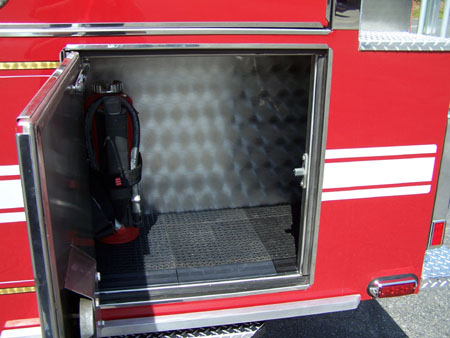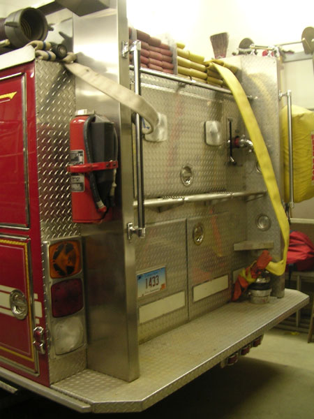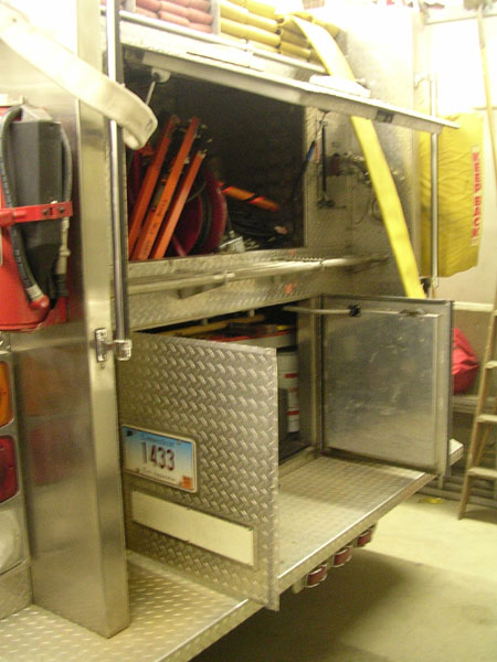 cord reel in officers side pump panel. New Fire Research scene lighting.