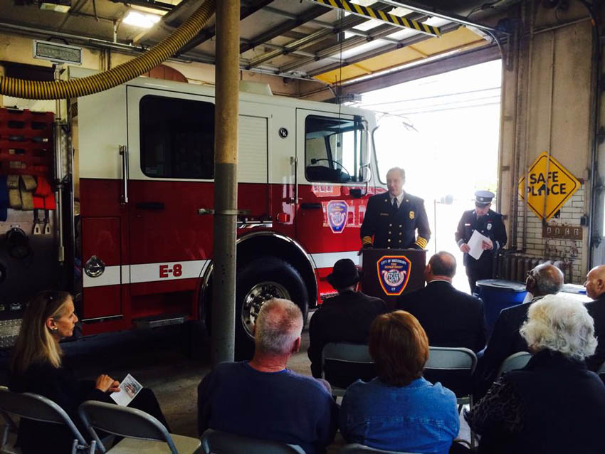 | Waterbury Engine 8 Dedication Ceremony: See photos below from the dedication ceremony of Waterbury Engine 8 to official service. November 12, 2014. We gathered in the Bunker Hill Fire House along with Mayor Neil O'Leary, Fire Chief Dave Martin, various line chiefs of the WFD, the Bunker Hill Neighborhood association, several political figures, and City of Waterbury Aldermen. Engine 8 is now on the job !! |