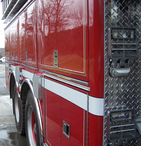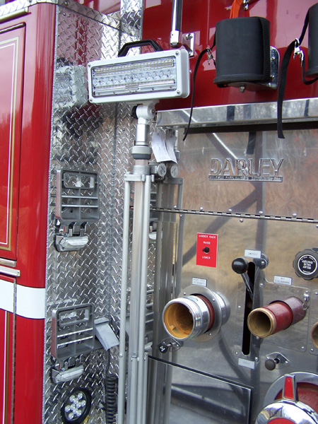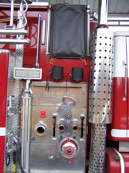 | Here are some pictures from our finished refurb of Willington's Engine Tanker 113. Upgraded lights, rust corrections, scene lights, hose covers, Zico Ladder rack. This ladder rack is a new design. |